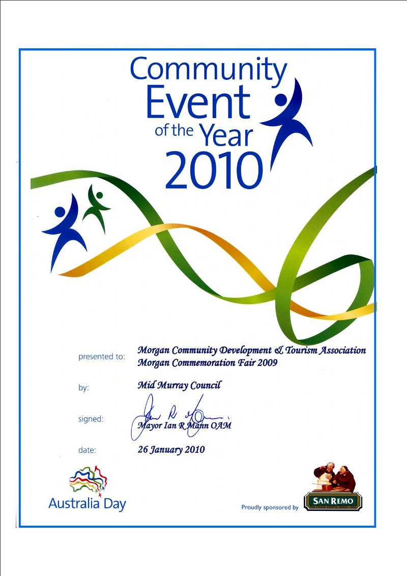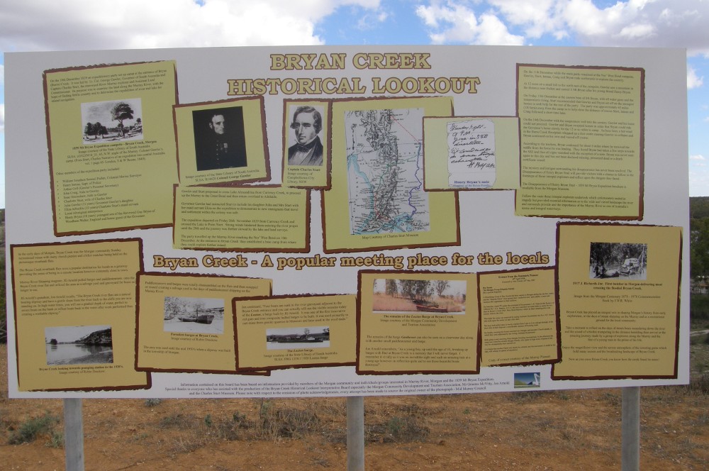 was held at Morgan on the banks of the River Murray on 12th December 2009. The event was to commemorate the 170th Anniversary of the 1839 Mt Bryan Expedition led by Lt. Col. Gearge Gawler, Governor of South Australia and Captain Charles Sturt with a party of 13 other members, sailors and staff. The expedition departed from Currency Creek on November 26th by land and boat and arrived at Nor West Bend at Morgan on December 10th, 1839. As the expedition ended in tragedy surrounded by mystery and intrigue as to the disappearance of a young man on the expedition from England, Henry Bryan. Henry was a house guest of the Governor. Henry Bryan was never found, declared missing on a death certificate issued but never found to this day. The concept of the event was developed by the Morgan Community Development and Tourism Association supported by the Mid Murray Council. His excellency Rear Admiral Kevin Scarce AC CSC RANR, Governor of South Australia attended the